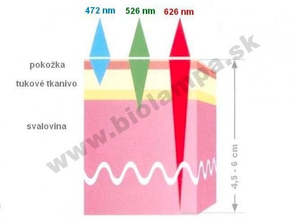 Polarisoidun valon tunkeutumissyvyys riippuu siis aallonpituudesta ja sen tuottamistavasta. Tältä osin punainen (626 nm) polarisoitu valo tuottaa parhaat tulokset (ks. alla oleva kuva). Valon tunkeutuminen riippuu siitä, minkälaista kudosta valaisemme. Kokeessa kävi ilmi, että kudos, jossa on enemmän rasvasoluja, on läpäisevämpi kuin lihas, jossa valo absorboituu enemmän korkean hemoglobiini- ja vesipitoisuuden vuoksi. Mitattujen tulosten perusteella voidaan päätellä, että valolla, jonka spektriominaisuus on 626 nm (+/- 18 nm), on säännöllisessä käytössä parhaat edellytykset vaikuttaa edullisesti fysiologisiin prosesseihin paitsi pinnalla myös ihmiskehon kudosrakenteissa aina 4,5-6 cm:n syvyyteen asti.